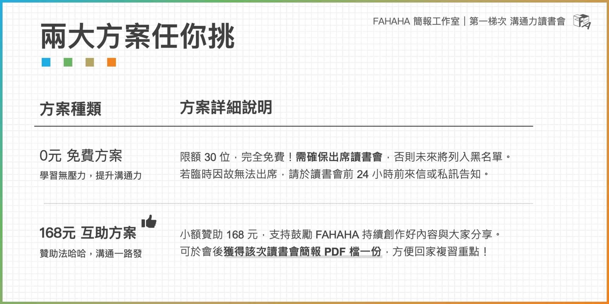 🚀 此為FAHAHA簡報工作室舉辦的溝通力讀書會
