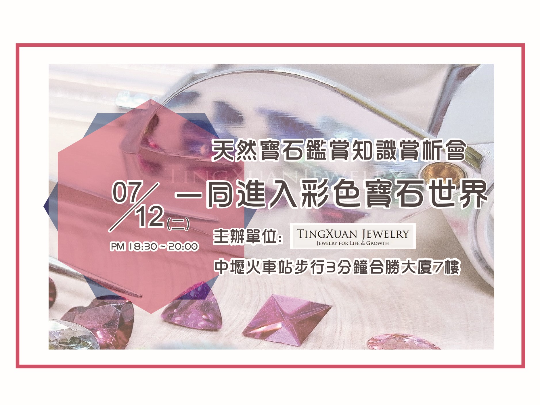 來自世界各地的天然彩色寶石種類多彩變化無盡,邀請對彩色寶石有興趣的你,想要打破「紅色的寶石就是紅寶石」的認知,帶你一同走入天然彩色寶石的美麗世界~