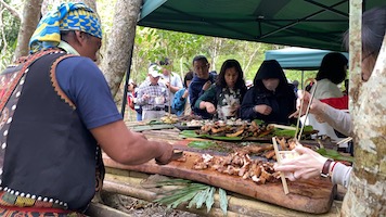 來到部落森林館,由獵人引導如何觀察與採集日用所需。打開身體的感受力, 學習如何活用山林智慧,眼前的野地將成為一座寶山,並體驗現場採集可以飽 食的野菜。