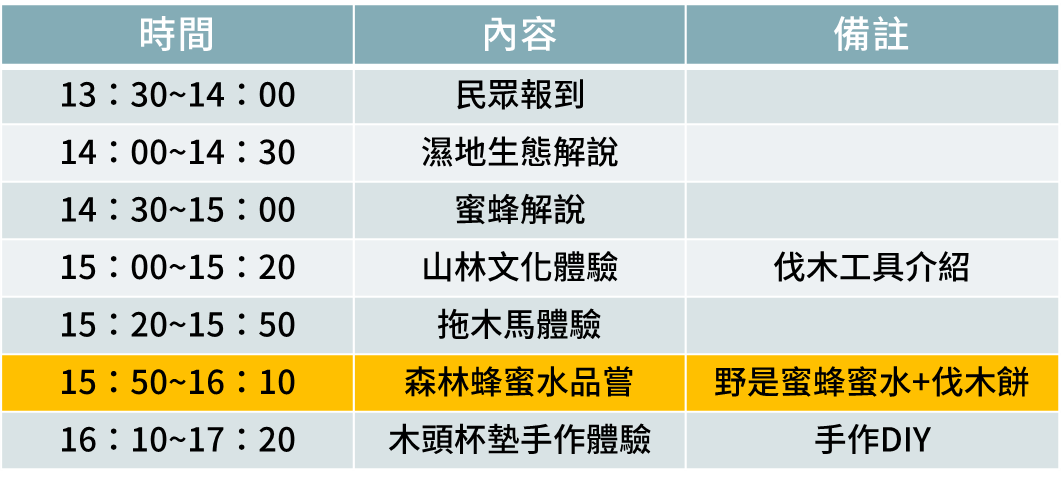 2、活動將於戶外進行,請注意蚊蟲叮咬,並留意自身身體狀況。