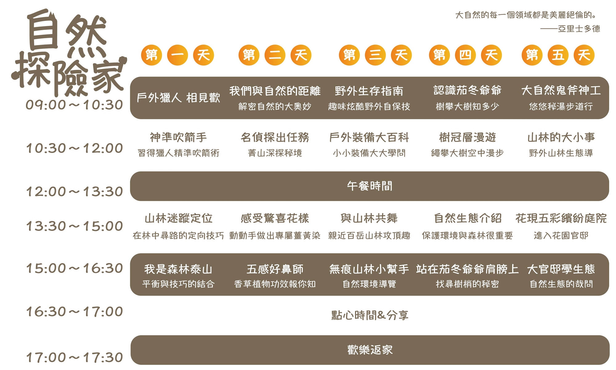- 集合與結束地點:原則上統一以台北車站為接送地點,如因活動安排有調整,會於第一時間通知家長。