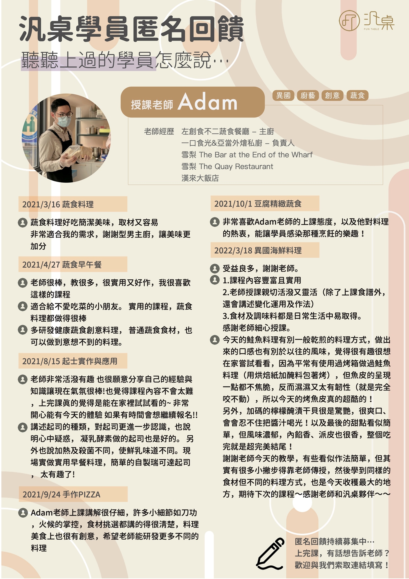 汎桌於每次上課後,都會邀請學員填寫「匿名」回饋單