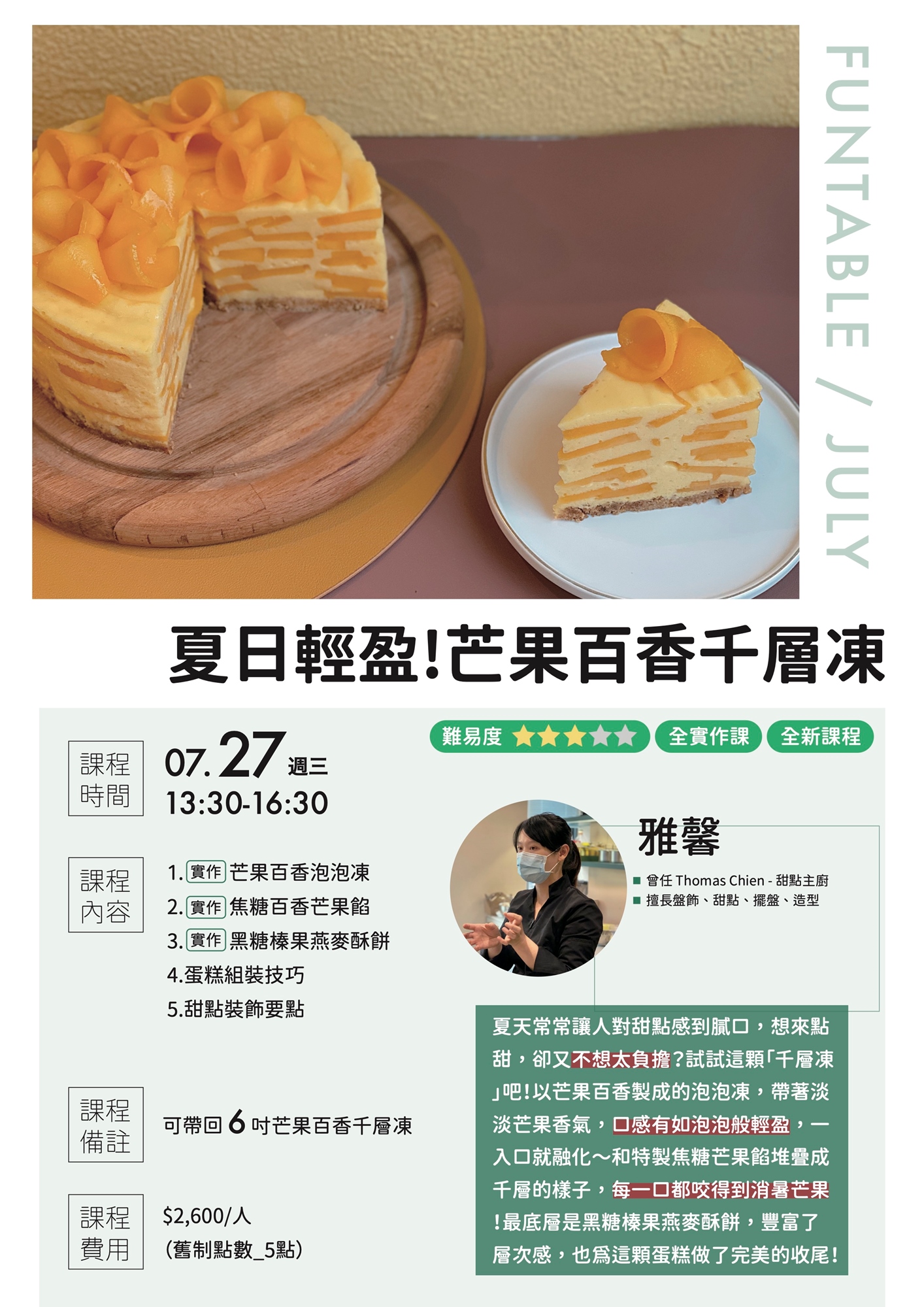 *每人可帶回 6 吋芒果百香千層凍