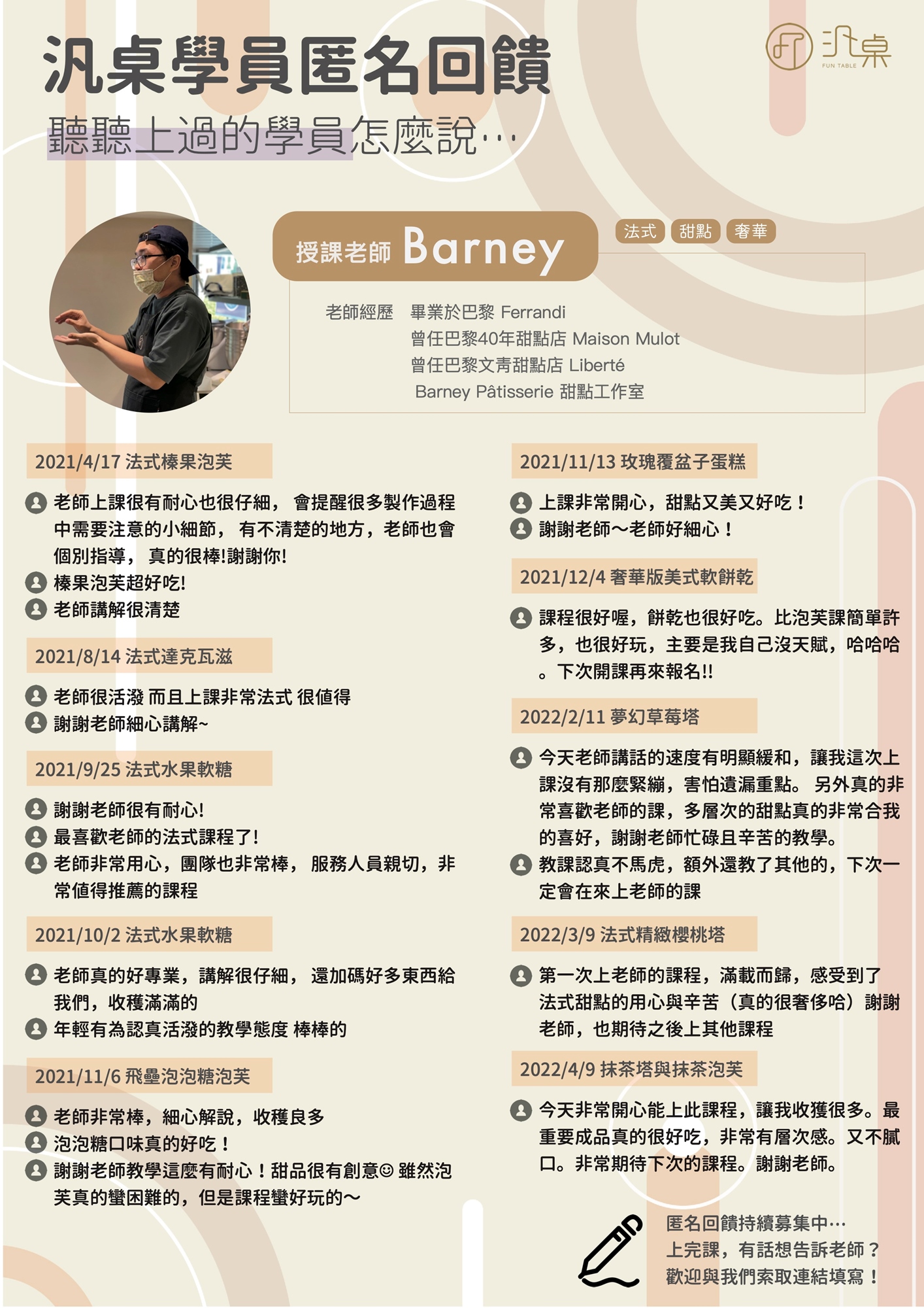 汎桌於每次上課後,都會邀請學員填寫「匿名」回饋單