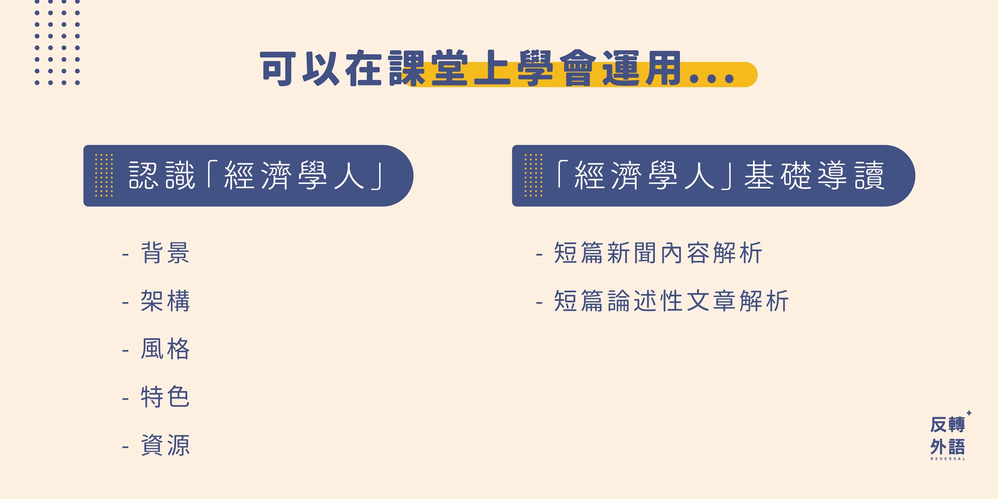 講師Leon為比利時(荷語)天主教魯汶大學歐盟政治與政策理學碩士與比利時(荷語區)根特大學歐盟法-法學碩士畢業背景,從事英語教學近10年,並多次受邀至多間私立大學擔任英語教學工作坊講師。曾任職於歐洲經貿辦事處貿易研究助理,現任於荷商唯優國際執行長特助與每日一經濟學人團隊-總編輯一職。
