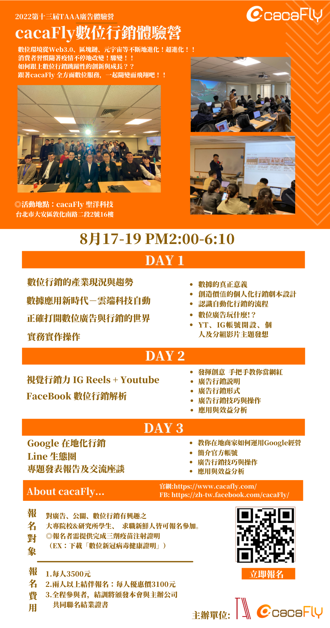 3.凡全程參與,將頒發台北市廣告代理商業同業公會與共同主辦公司聯名結業證書。