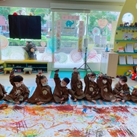 - 大型立體創作空間,從地上畫到牆上,讓孩子盡情揮灑顏料,一同創造無限可能。
