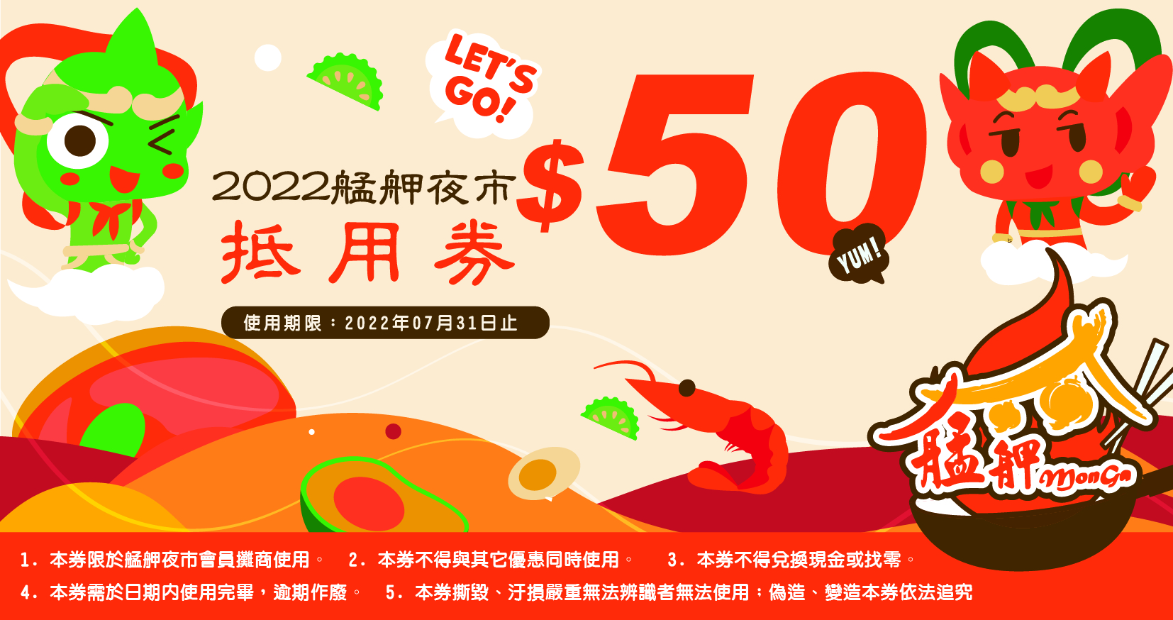 感謝 "艋舺夜市" 加碼贊助消費券$50元×2張=$100元