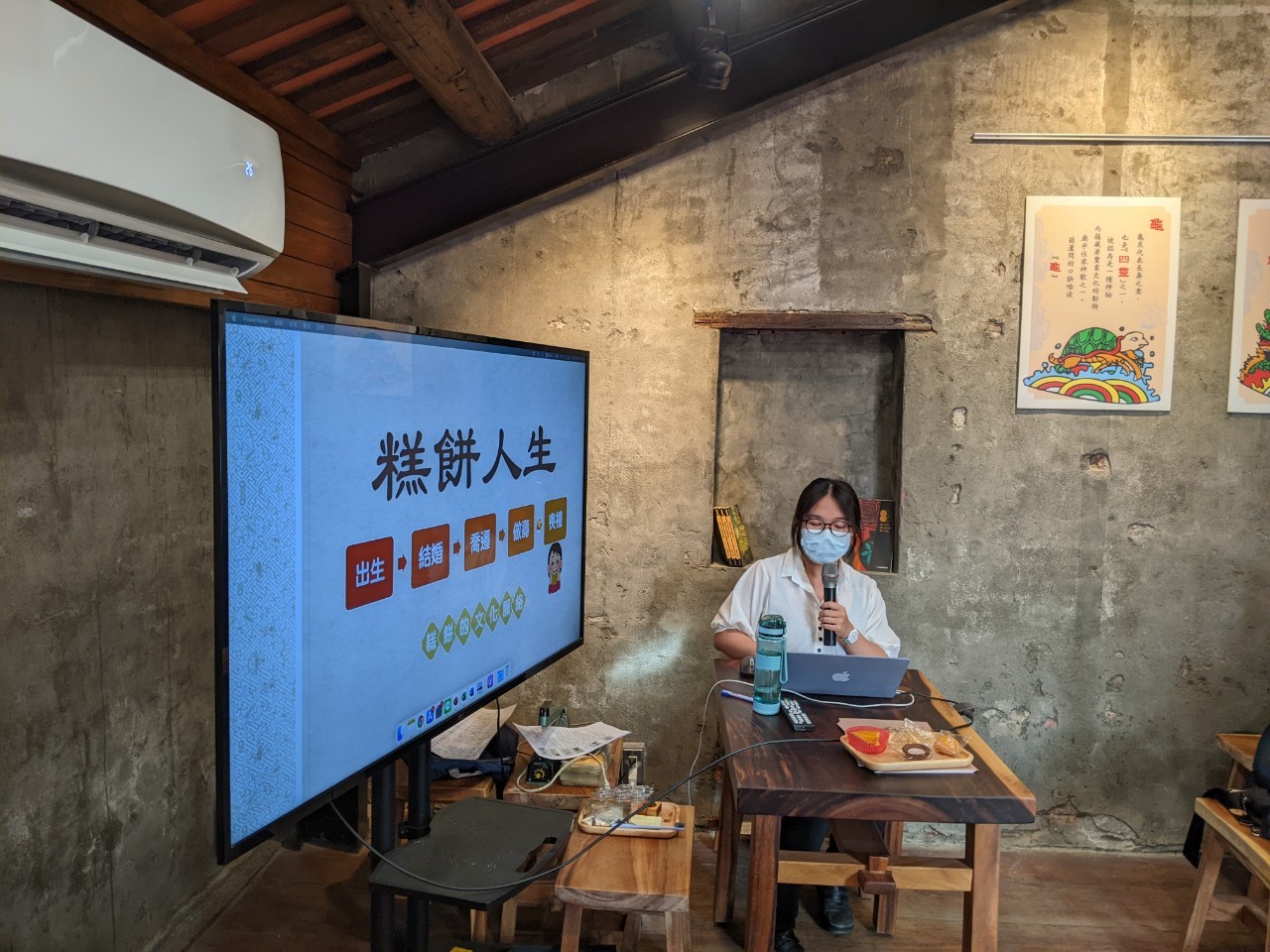 一邊聆聽歷史故事,一邊品嚐課程中提到的古早味糕餅,如鳳眼糕、紅豆粒與牛舌餅。