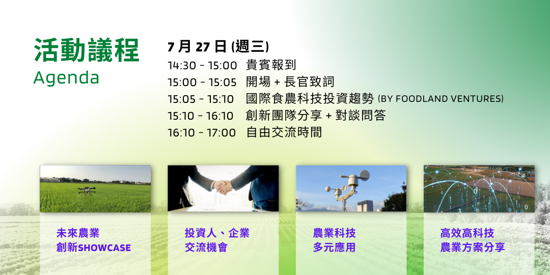 - 15:05 - 15:10:國際食農科技投資趨勢 (by Foodland Ventures)