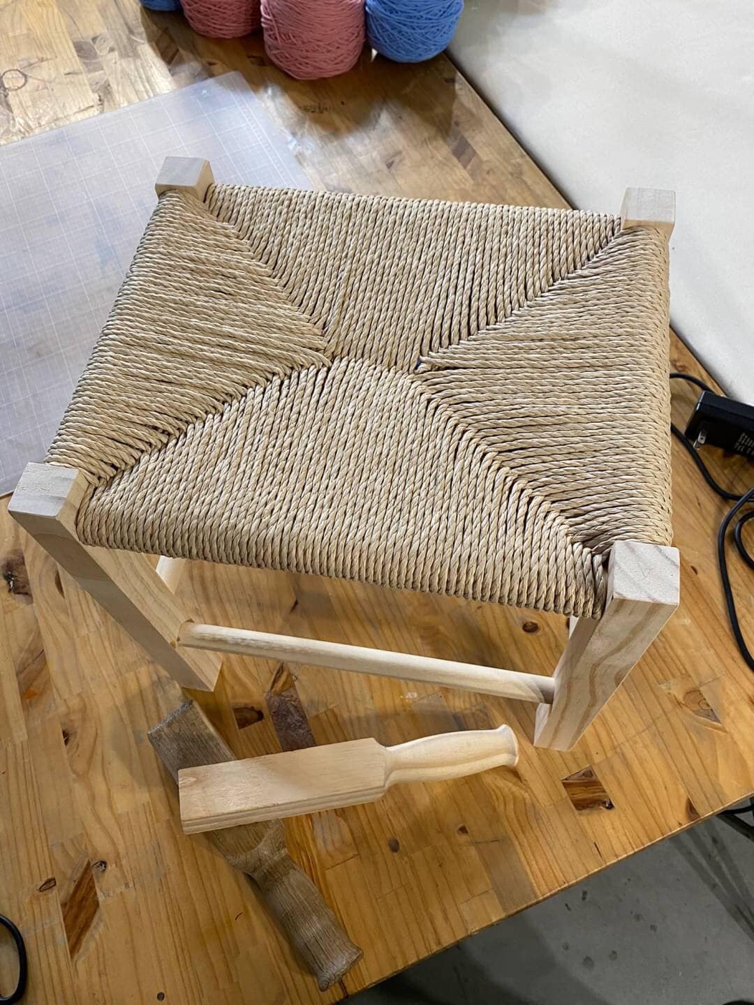 課程將由講師預先幫您完成木製椅架,再帶您運用不同顏色的紙繩以及講師自製的編織工具循序漸進完成椅面編織,讓您盡情發揮編織功力,