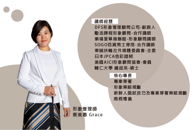 ○依據個人特色及個性找出適合的風格。形象顧問來解惑個人風格怎麼定位,從色系上的選擇到流行趨勢;從民族風到時尚休閒風格,形象顧問用最精闢的分析讓你不再穿錯衣服走錯棚!