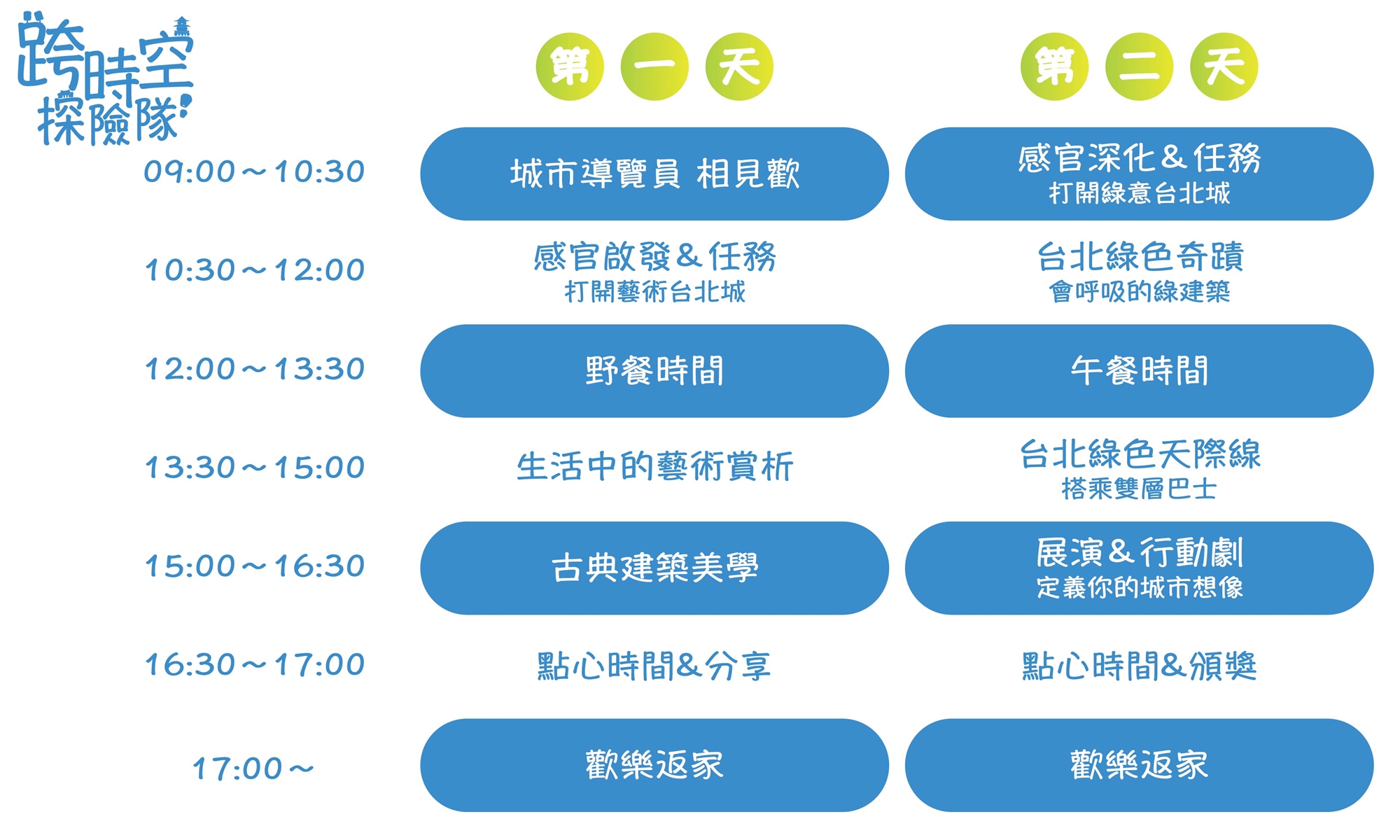 - 集合與結束地點:原則上統一以台北車站為接送地點,如因活動安排有調整,會於第一時間通知家長。