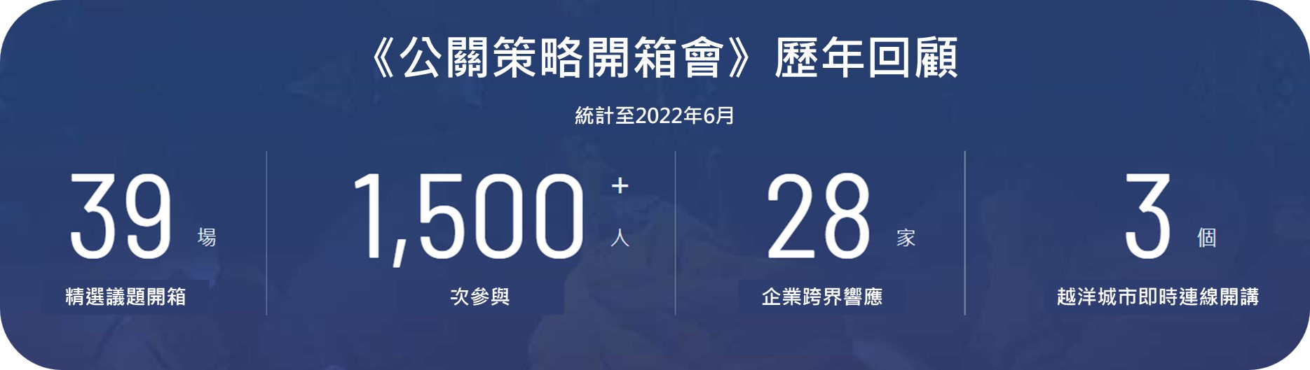 產業瞬息萬變,新的商業模式、消費者行為、產業主導者在市場上衝撞出各式火花,在品牌經營、商務拓展的路上,優秀的公關顧問團隊應該與企業一同跨越未知、創建未來。在2022下半年的系列場次中,我們挑選了五大產業關鍵趨勢,搭配實際的公關操作案例,與您分享品牌如何掌握趨勢、引領風潮、成為產業中的旗手。
