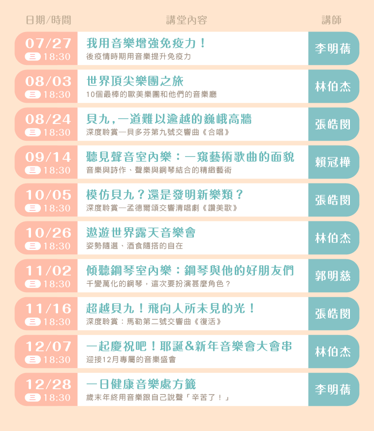 力邀各路名家上線,各類型的音樂講座任你挑選