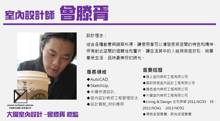 空間設計師需要上知天文下知地理,會設計、會畫圖、會談案子、會工程發包…。還要能呈現「空間美學」並完成業主需求。如何完成空間的設計併進行施工,確保完工後的視覺及居住感受跟預期相符… 設計公司的職能需求,