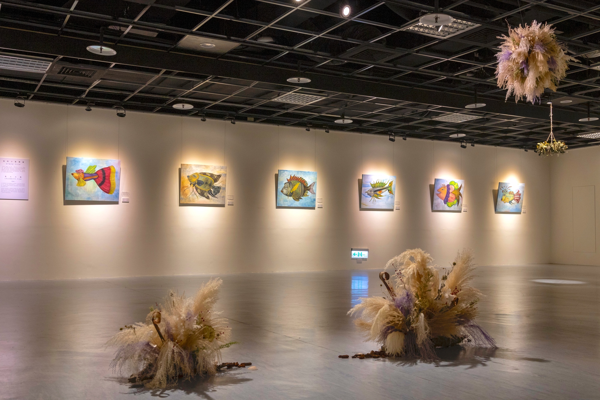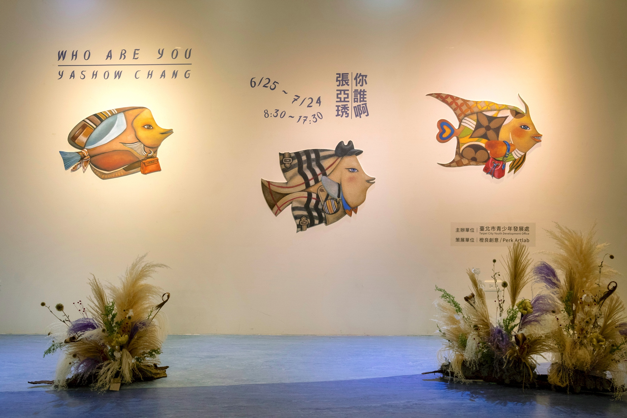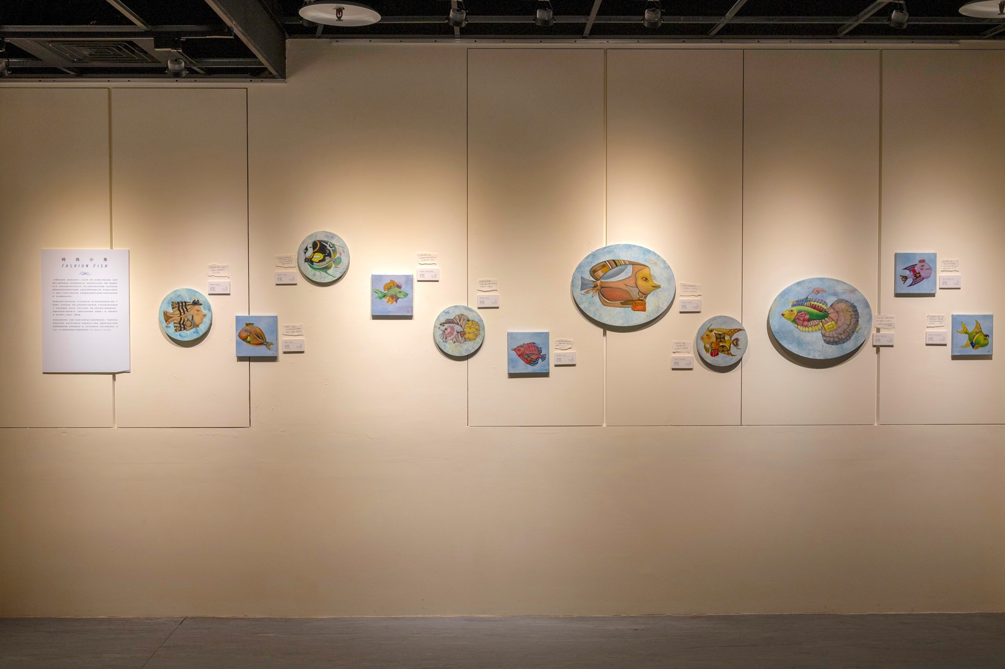 「 亞琇的小魚作品帶有超現實主義的魔幻氛圍,本次展覽結合畫作展示與藝術互動體驗,將引領觀眾展開一場『自我形象剖析與標籤重組』,期待我們都能活成一隻隻繽紛的小魚,驕傲而美麗的存在。 」