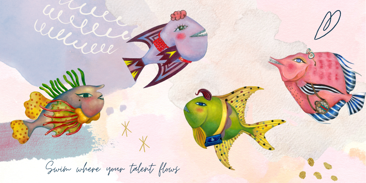 ▪ 時尚小魚系列|從過去在英國的精品代購經驗發想,將小魚們化成時尚品牌大使。
