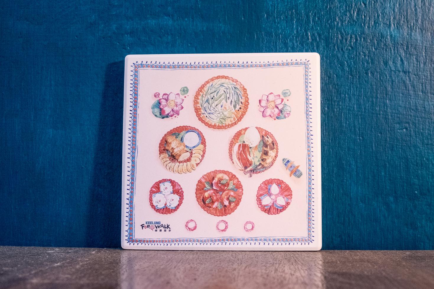 雨都漫步將農曆七月常見的供桌,以插畫重新描繪普度桌上的美學,讓祭典中不可或缺的元素躍上家戶必備生活小物-杯墊。搭配精美印刷呈現插畫質感,從餐桌上的日常看見台灣傳統文化的動人之處,掃描QR Code即可開始線上普度。