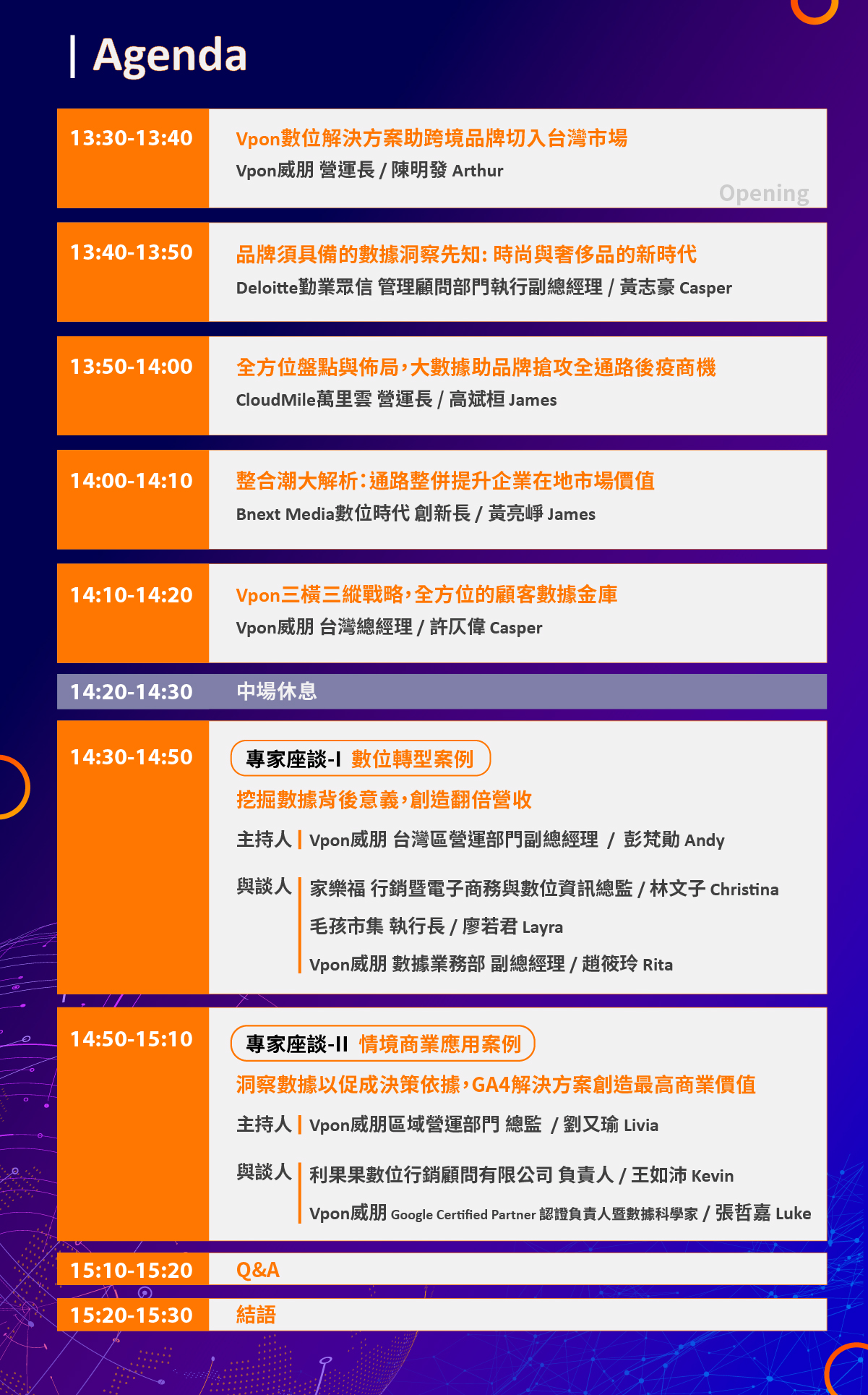 2.主辦單位有終止及變更活動議程與講者之權利,最後議程以活動當天為準。