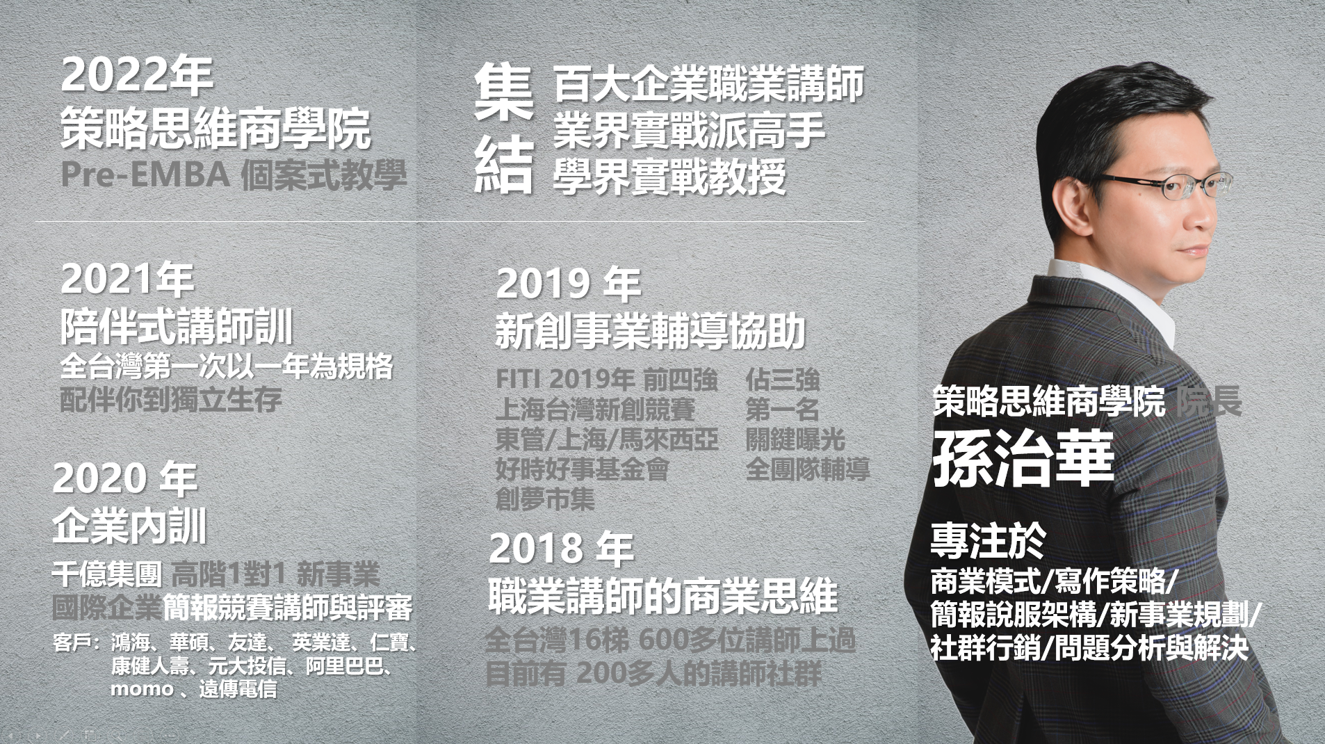 新商業模式諮詢 治華老師每年的經驗都可以成為你的墊腳石