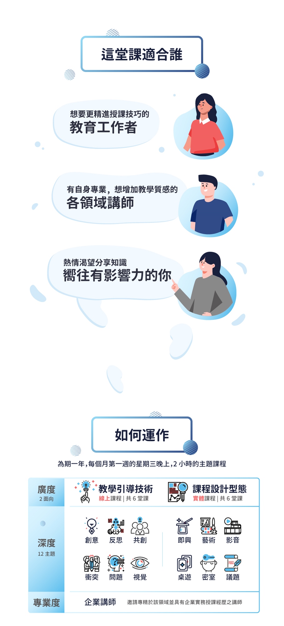 前六場為線上進行;後六場為實體進行(暫定上述場地,如有變更會另行通知)
