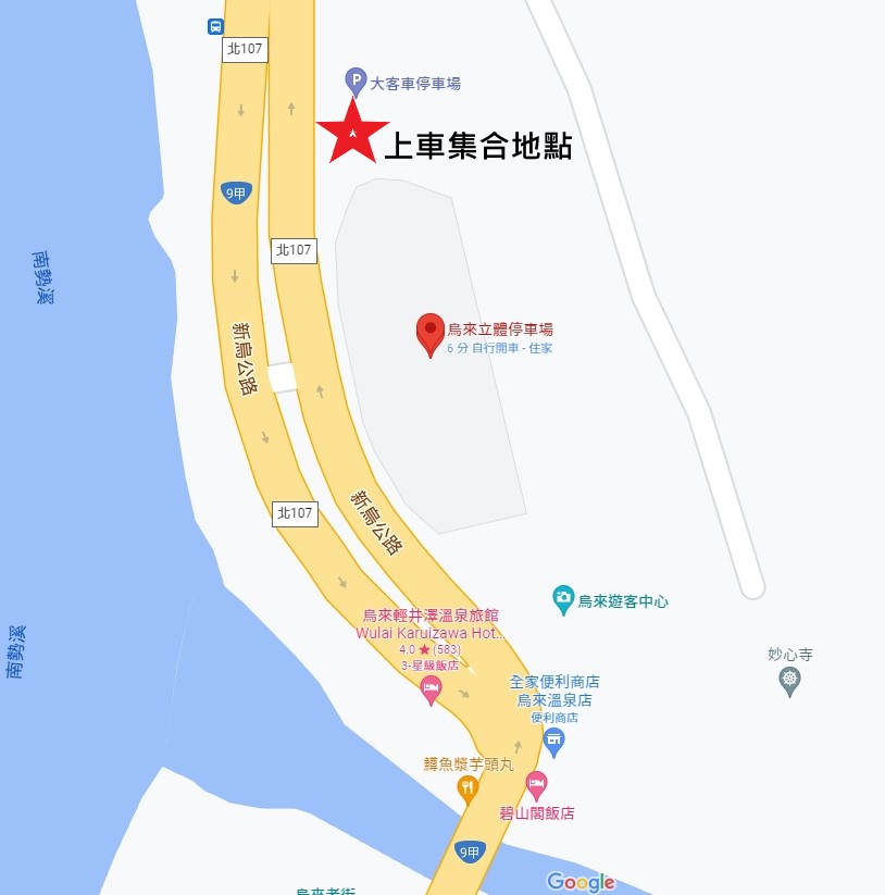 第一梯次 10:00~10:10 第二梯次 11:00~11:10 | 集合相見歡 | 烏來立體停車場 | 1.全程搭乘計程車專車。 共有2個梯次搭乘專車 2.全程免費。