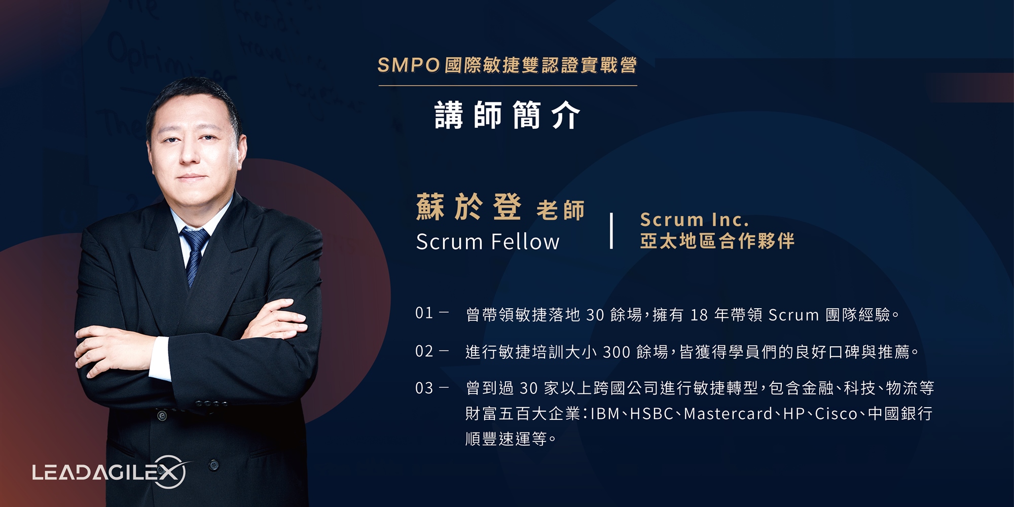 6.Scrum發明人大師認證講師蘇於登親自來台面對面授課