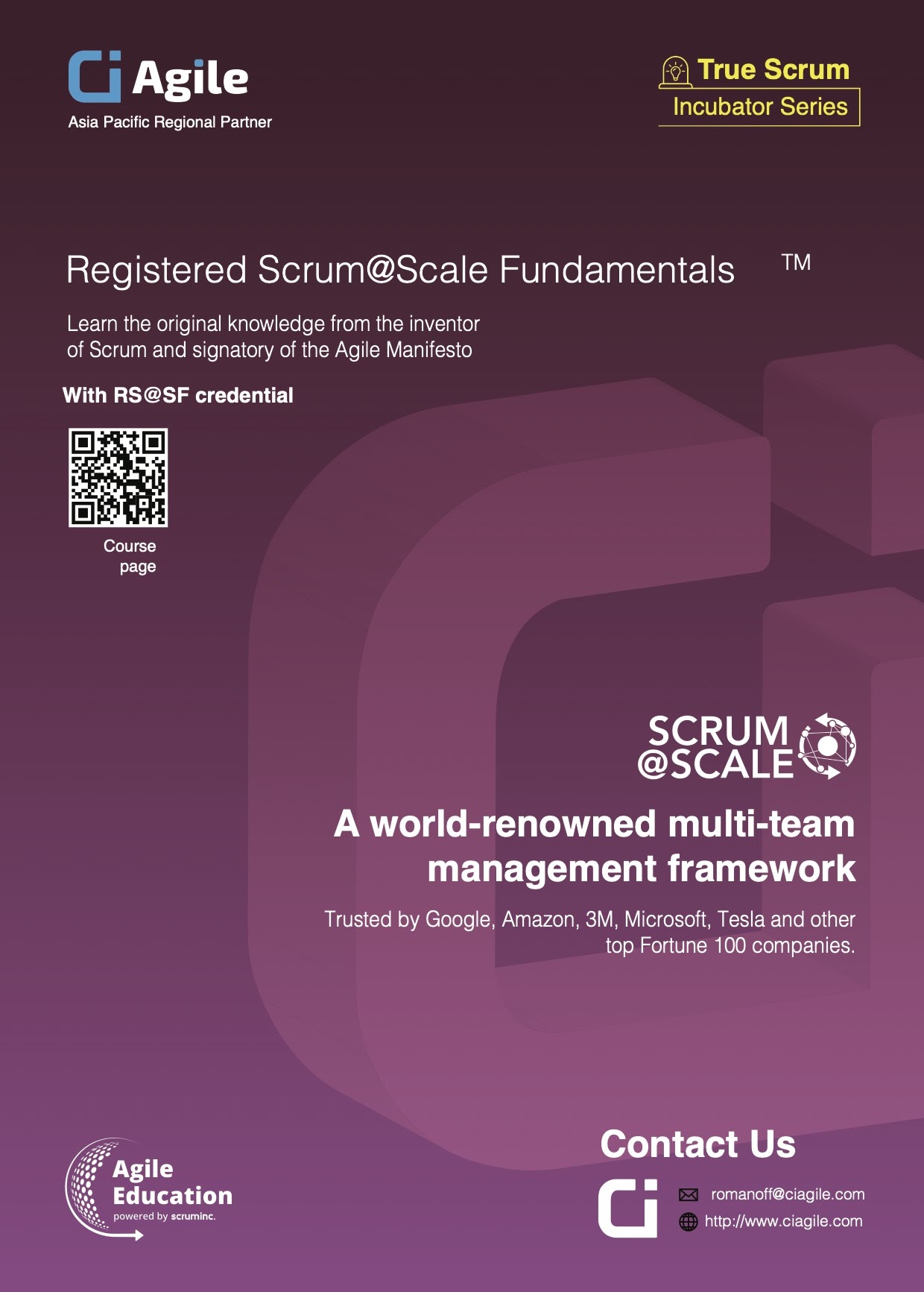 RS@SF: 這是大規模、組織化的Scrum課程,所以針對管理層、管理職開設的的相關課程,但偏向基礎說明,日後會因應這次課程反應,新增開設實務應用面的 RS@S的課程