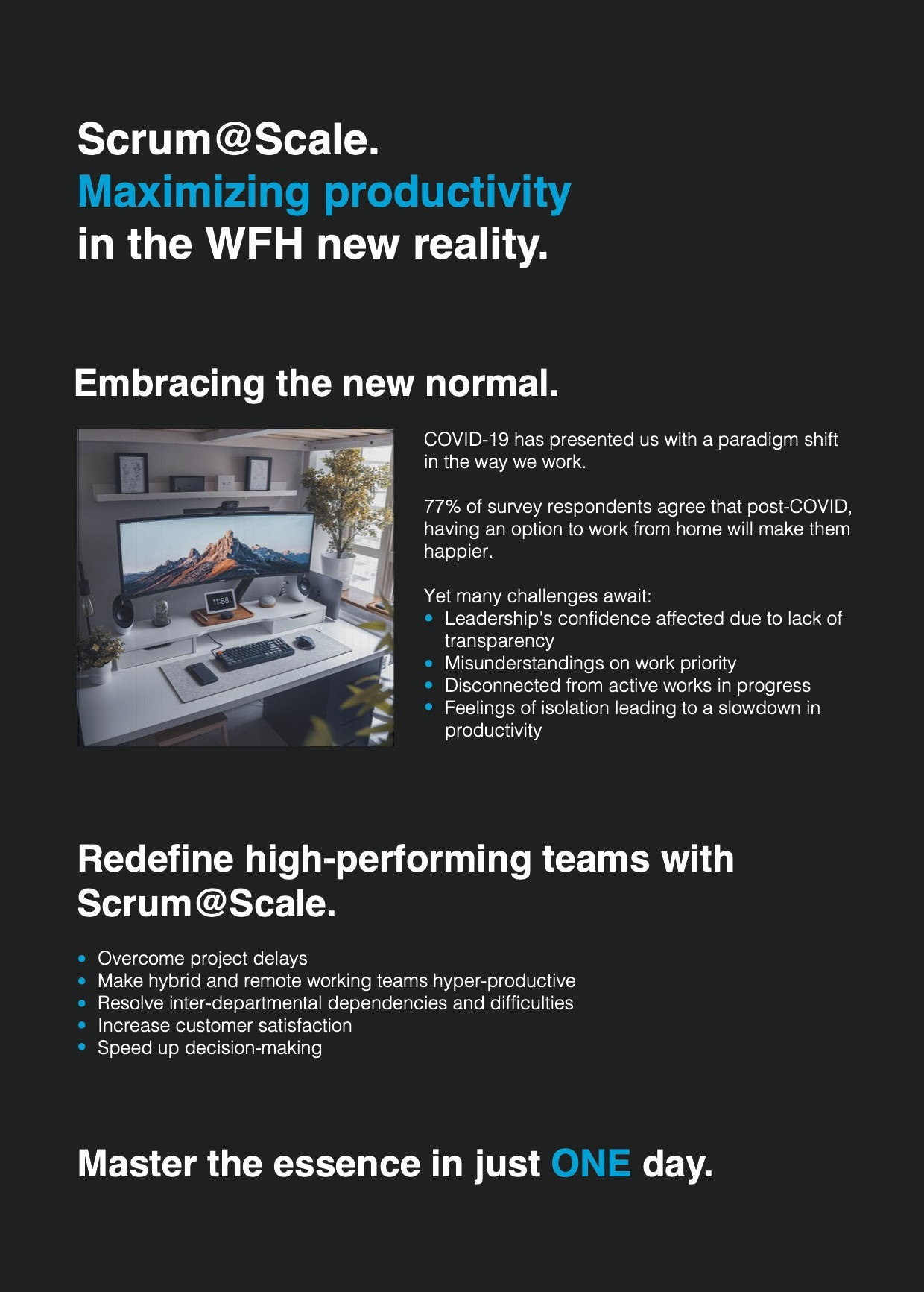他致力於幫助敏捷社群實現 True Scrum 知識,並指導新培訓師成為亞洲最佳 Scrum 培訓師。