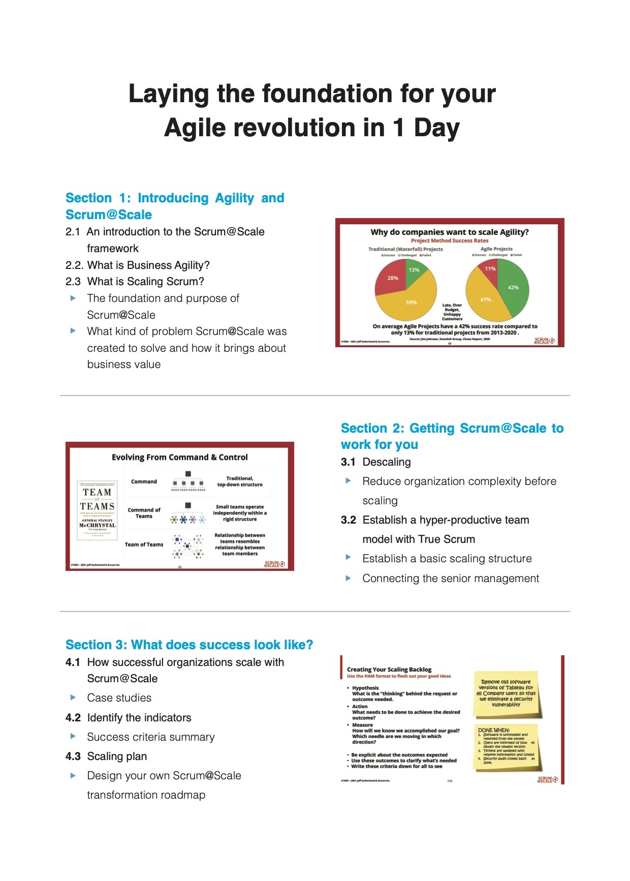 自 1983 年,Jeff Sutherland 博士完成了及其可能是世界首例的敏捷轉型。其人生經歷造就了 1955 年創立的 Scrum 以及 Scrum 在未來 25 年的蓬勃發展。經過多年在世界各地成功的敏捷培訓經驗,您將在本課程中獲得對於成為高效能 Scrum Masters 和 Product Owners 極為重要的見解和策略。創建強大的 Scrum 團隊,須要注意以下幾個點: