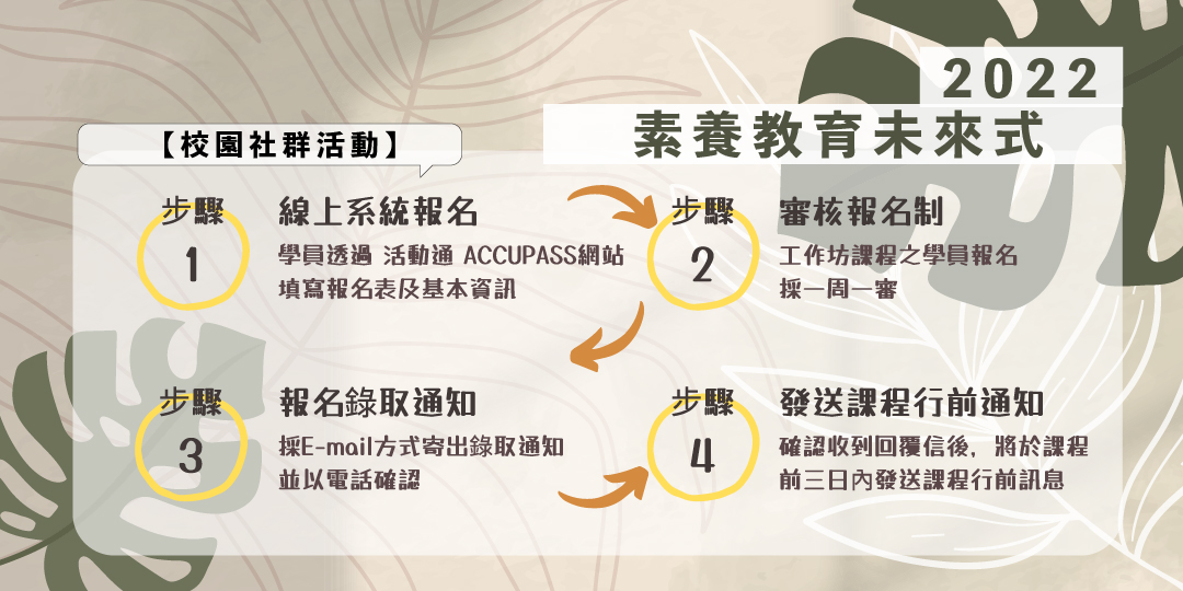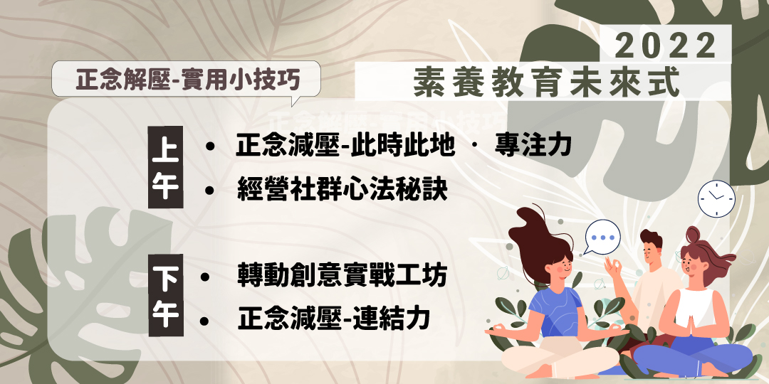 - 注意事項:學員穿著便服;全程提供健康蔬食餐點