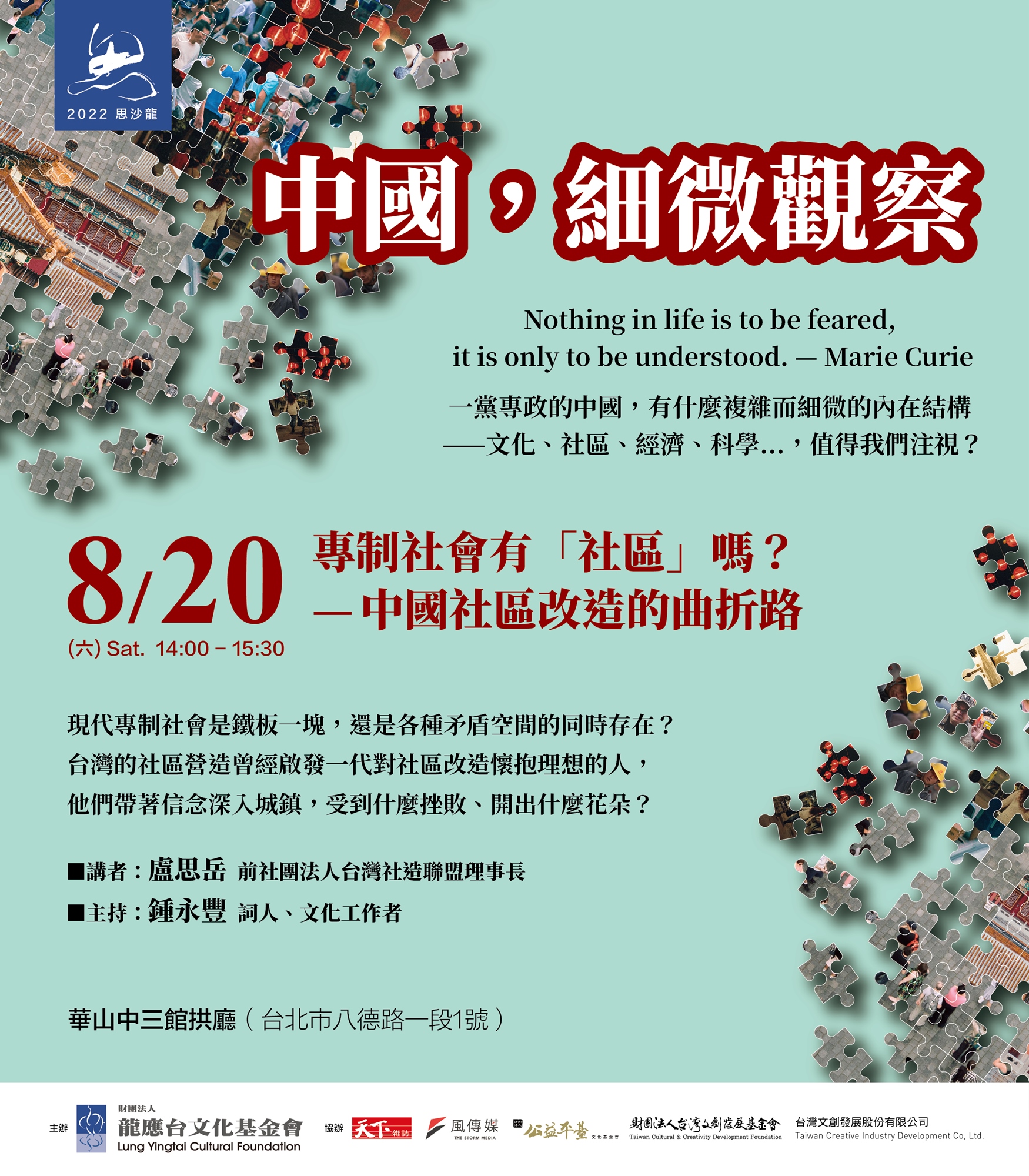 現代專制社會是鐵板一塊,還是各種矛盾空間的同時存在? 台灣的社區營造曾經啟發一代對社區改造懷抱理想的人,他們帶著信念深入城鎮,受到什麼挫敗、開出什麼花朵?