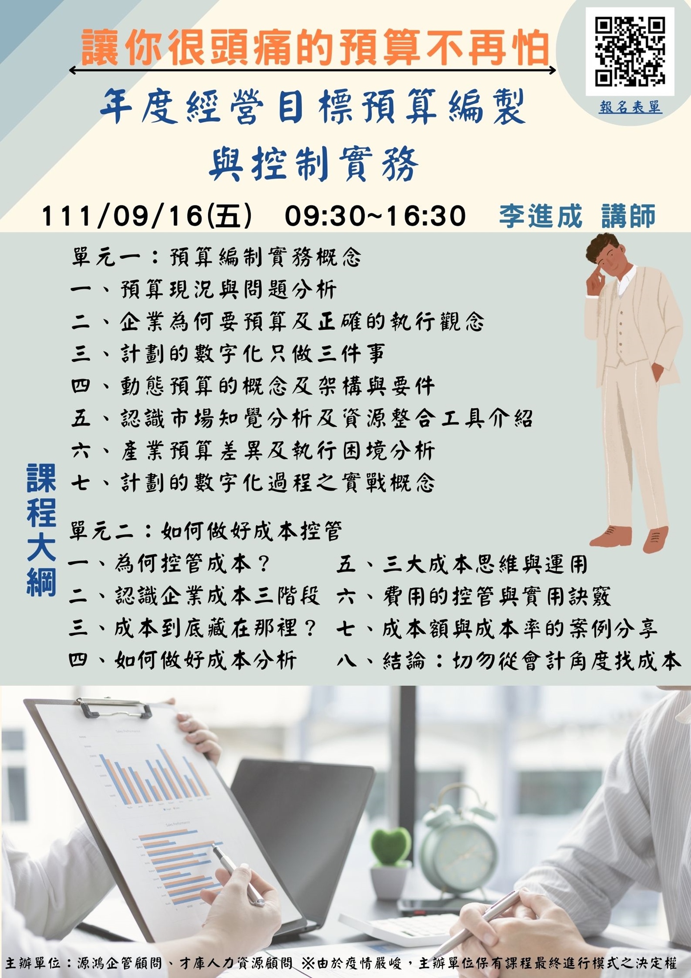 【上課時間】:111/09/16(五) AM09:30-PM16:30 (共計:6小時)