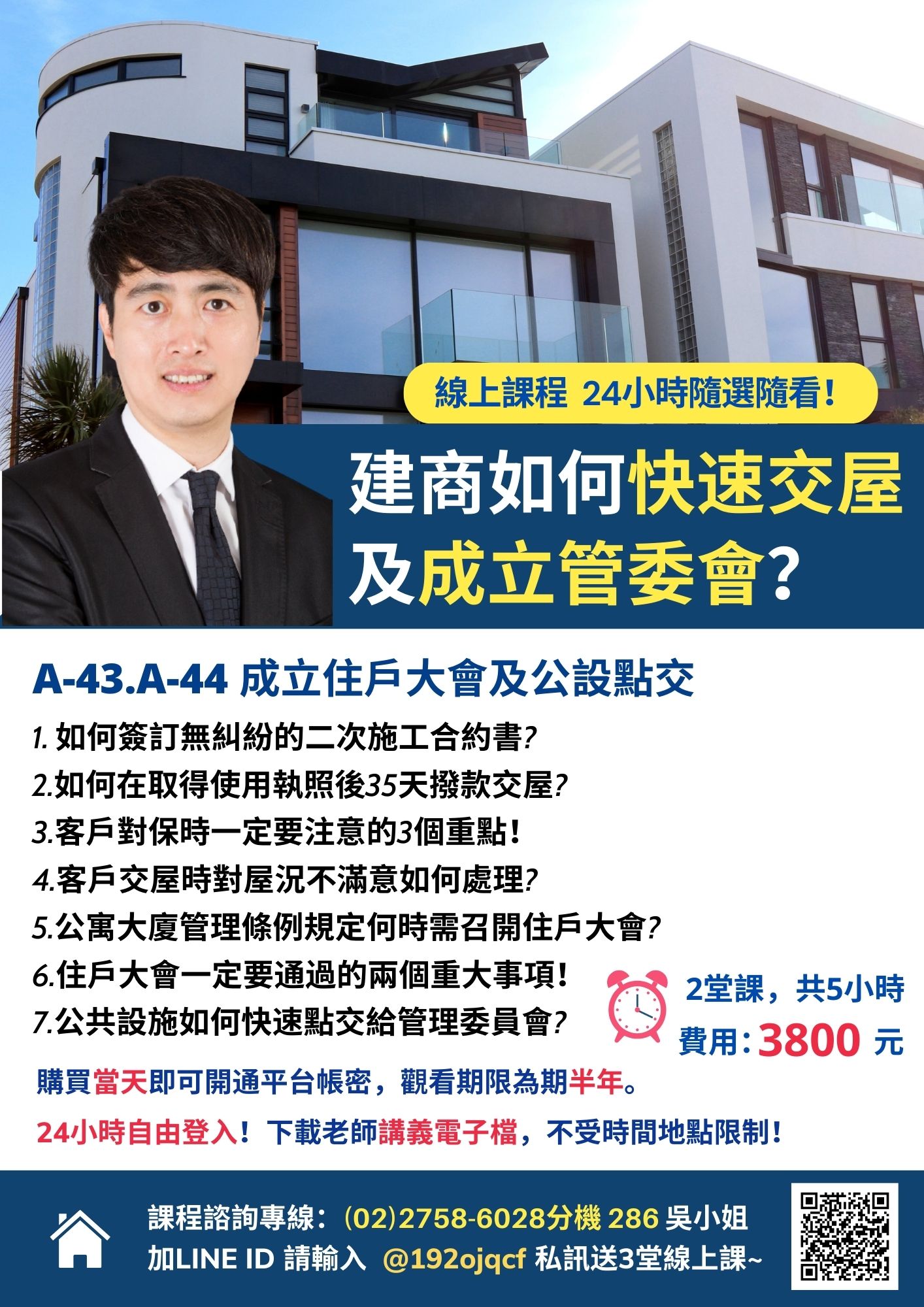 【線上錄影課程】公設點交實戰班,線上防疫價 3800元(月底前報名再送3堂線上課!)