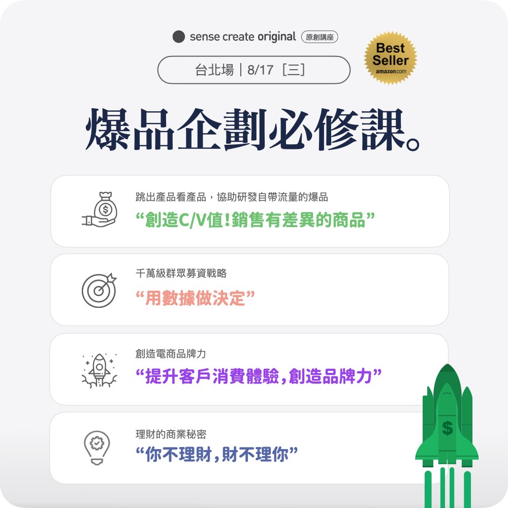 【爆品企劃必修課】8月班| 一站搞定!爆品策略 x 群眾募資 x 理財投資 x 品牌電商