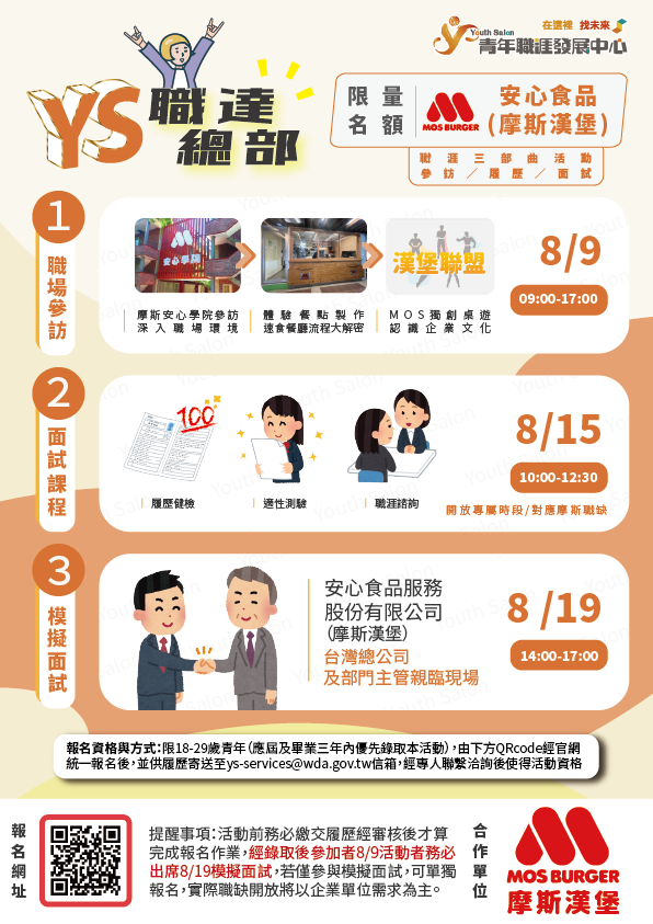 更會邀請到摩斯漢堡的主管為大家模擬面試