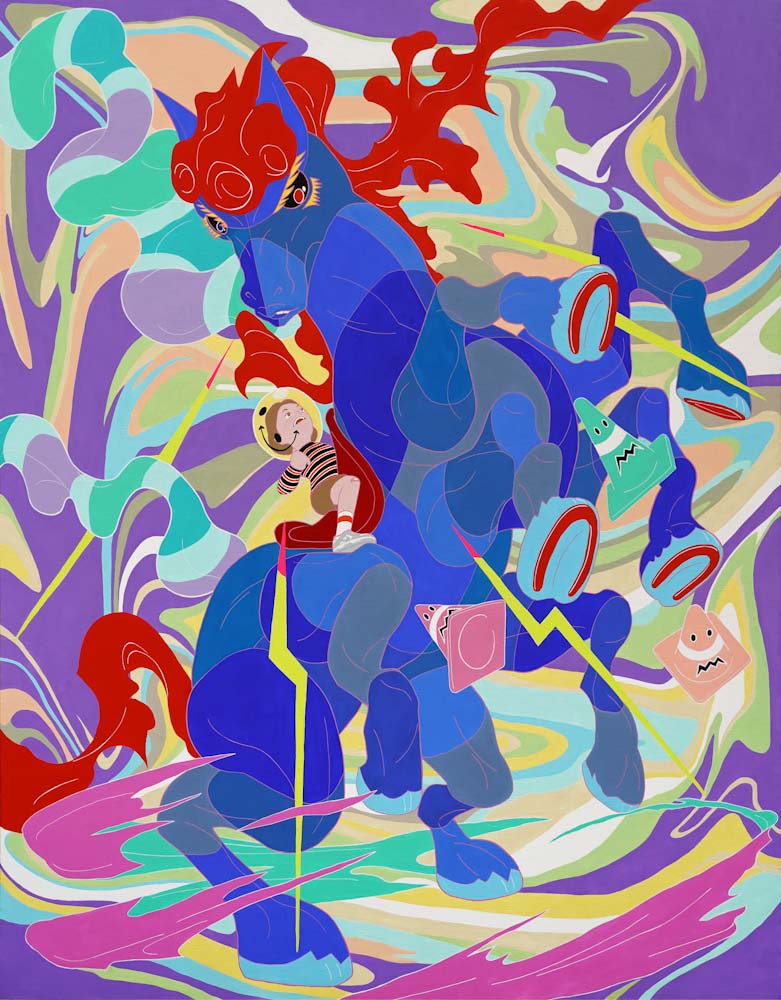 王宗欣,八腳馬之夢,2022,壓克力顏料/畫布,160 x 130 cm