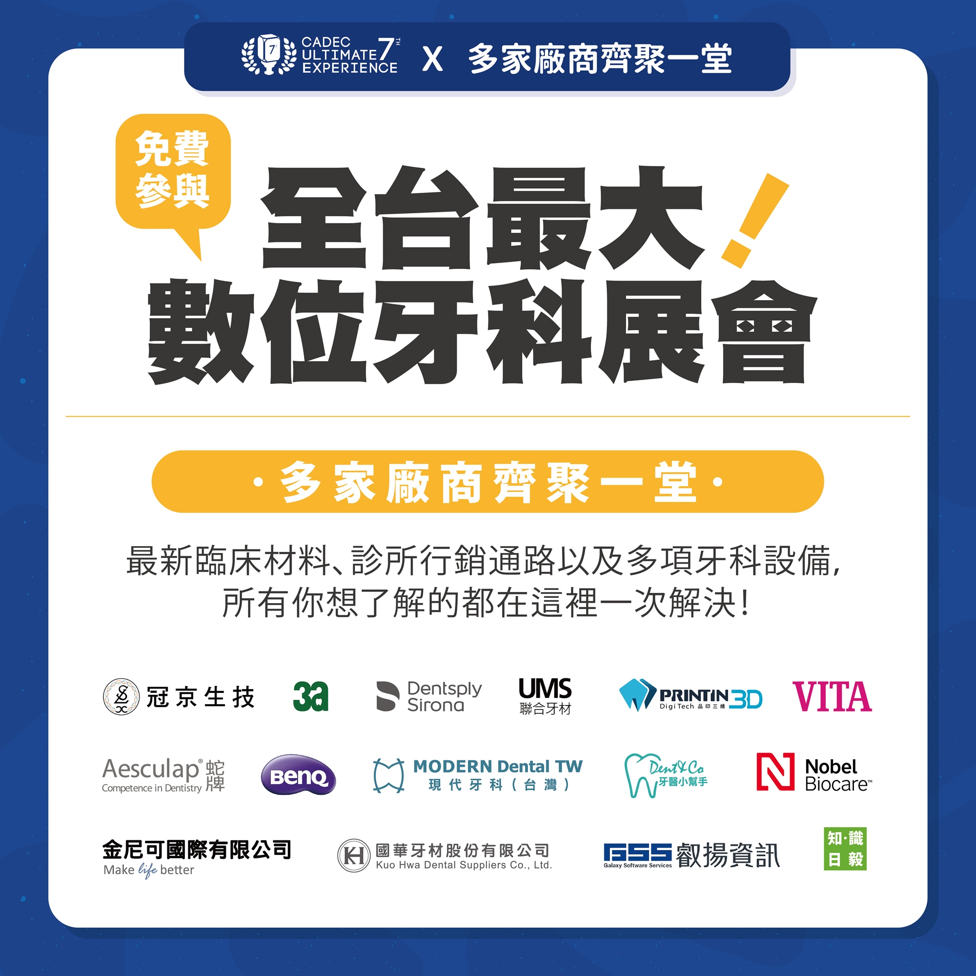 最完整的植牙手術流程、最簡易的全鋯冠臨床治療、最完美的美學設計,今年 CADEC 給你最實用的課程,課後還能與講師深度交流,共同探討臨床案例經驗與心得分享。