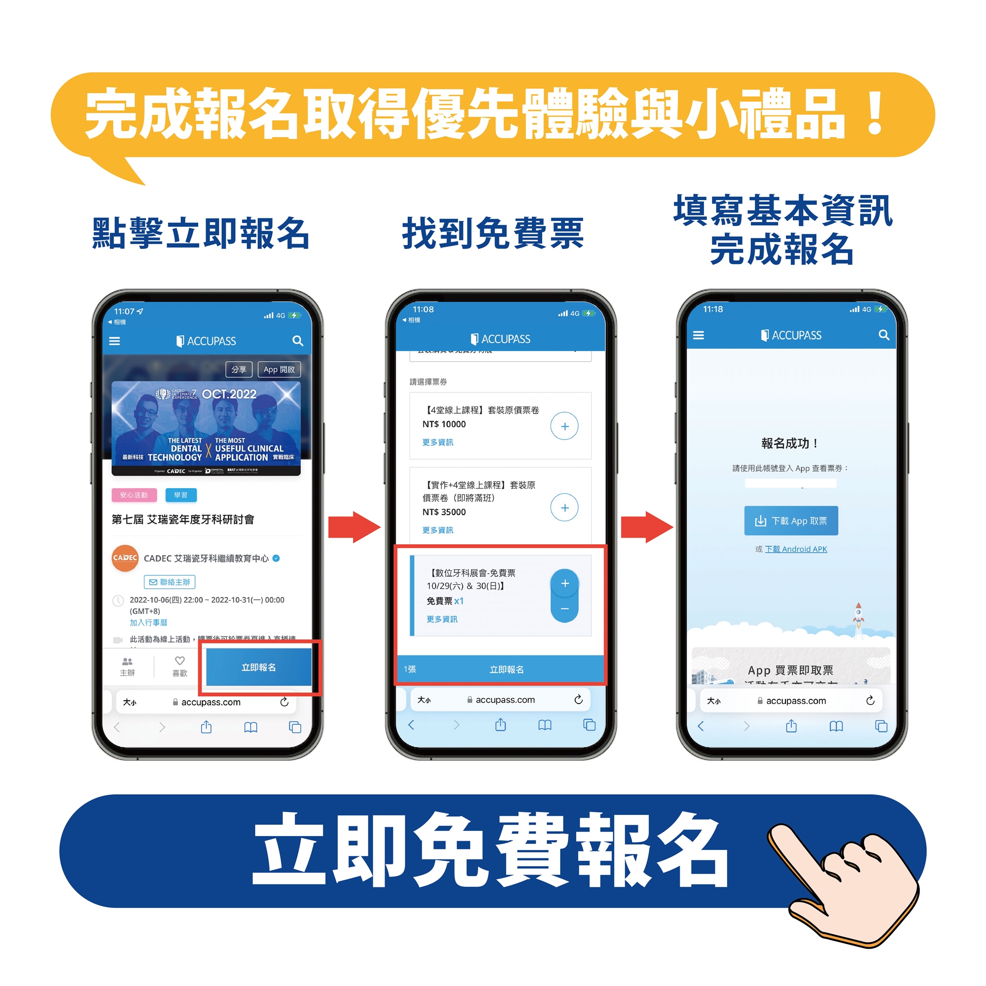 🌟 購票頁面選擇【數位牙科展會-免費票 10/29(六) & 30(日)】,免費參加!