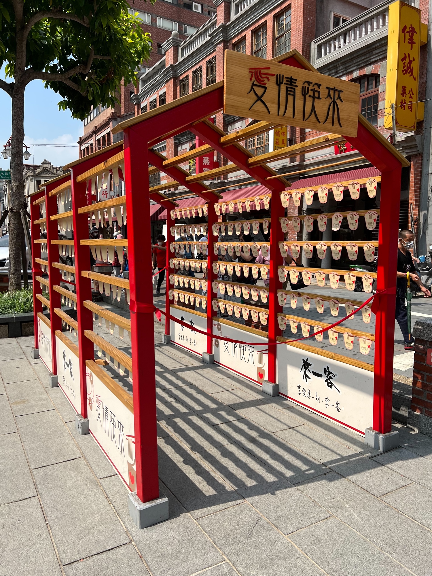 2022七夕限定!在台北霞海城隍廟前,將心願寫入祈願繪馬小卡,掛上來一客的愛情筷來祈願繪馬架上祈求愛情心願來臨~