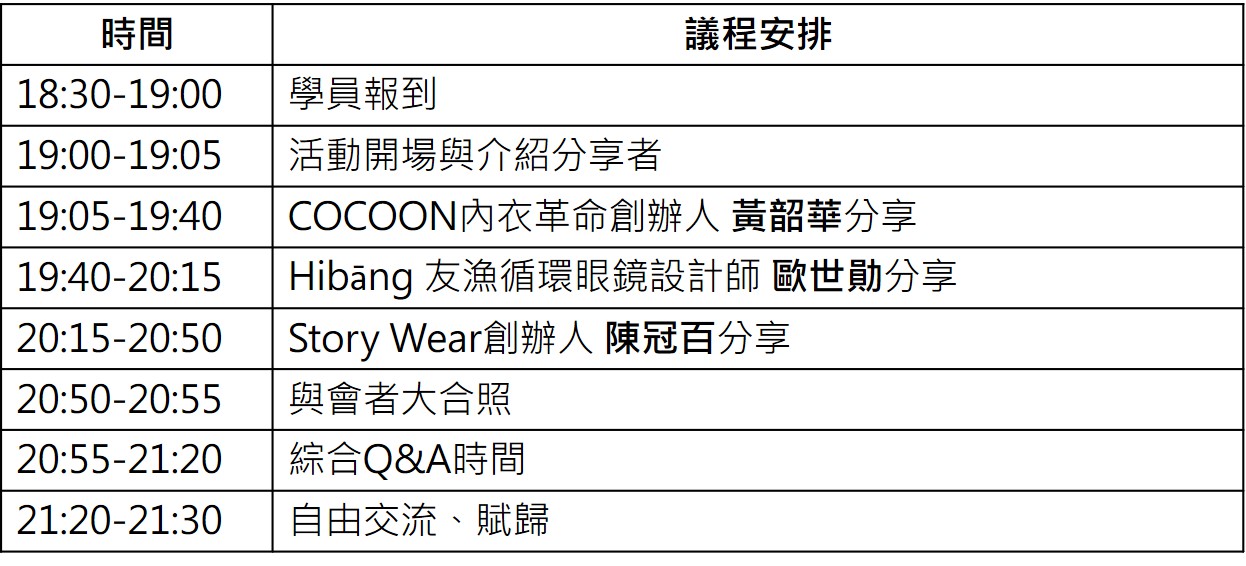 由此出發,基地開始好奇與想像臺灣永續時尚的發展現況是甚麼樣子呢?希望可以邀請在此領域努力的夥伴們分享自身的經驗與想法,活動中也會透過綜合座談的方式和現場的與會者們互動,激盪出彼此間的火花。