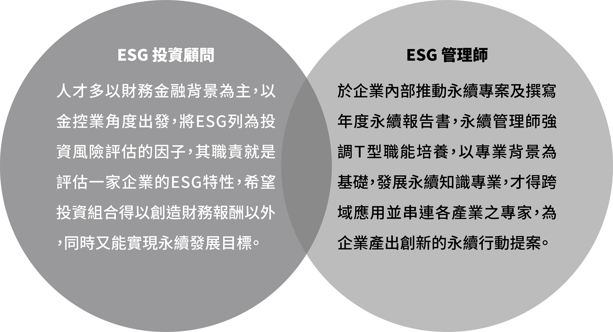以臺灣來說,目前的 ESG 專業有哪些職務選擇呢?你是否也瞭解「ESG投資顧問」和「ESG管理師」之間的區別?