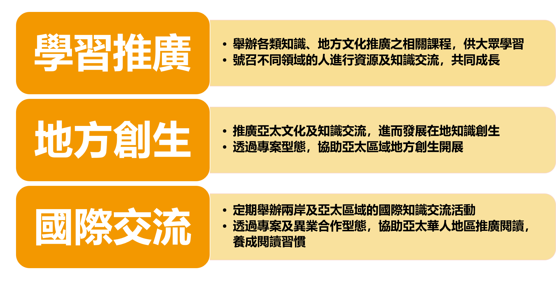 進而推廣亞太文化及知識交流,發展在地知識創生。