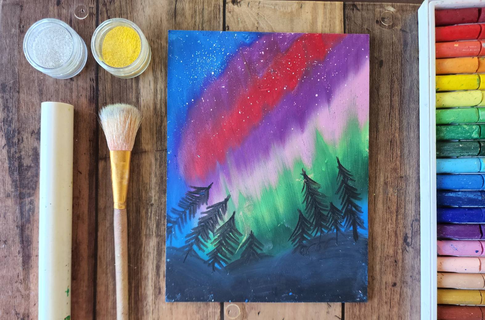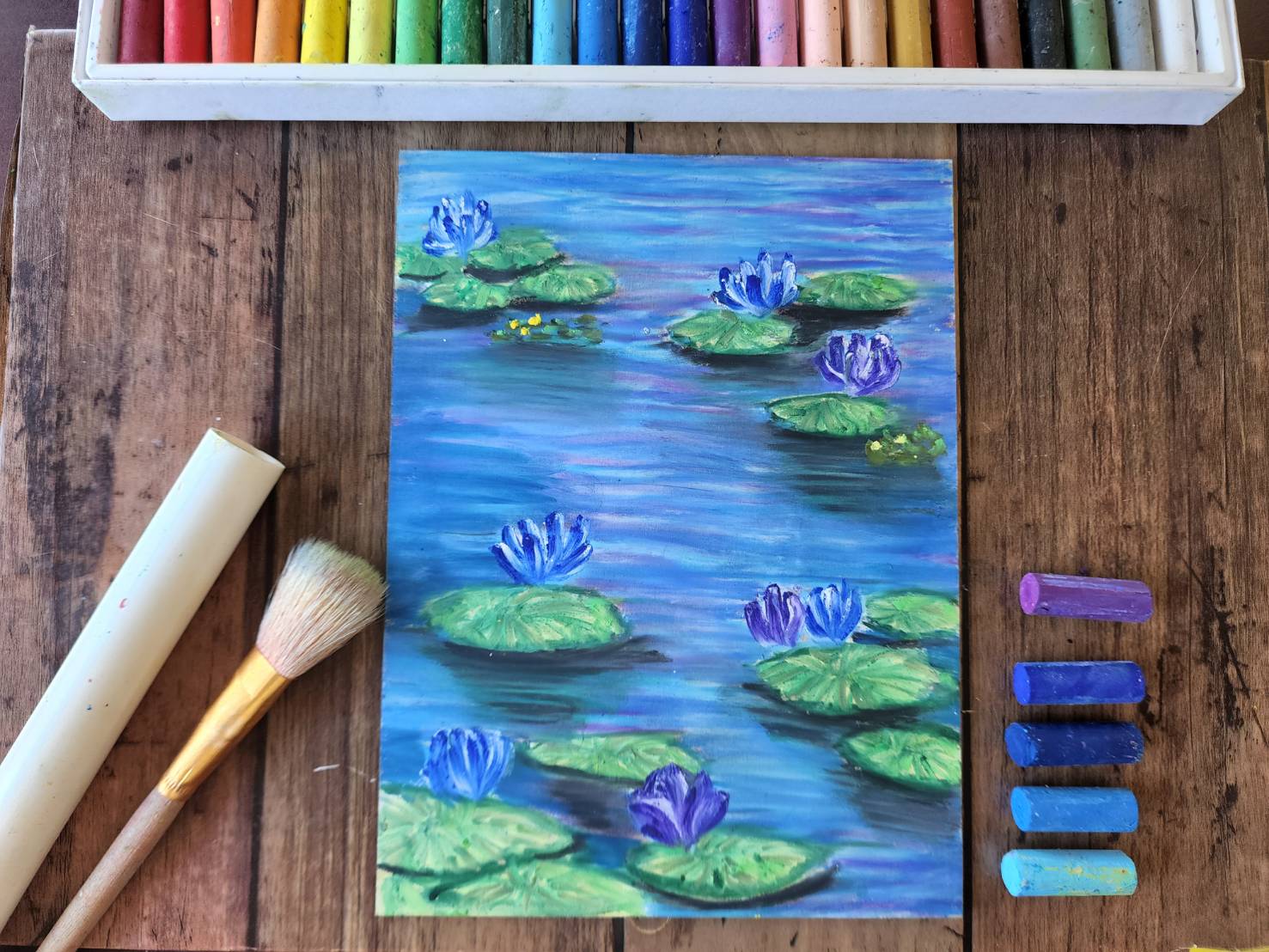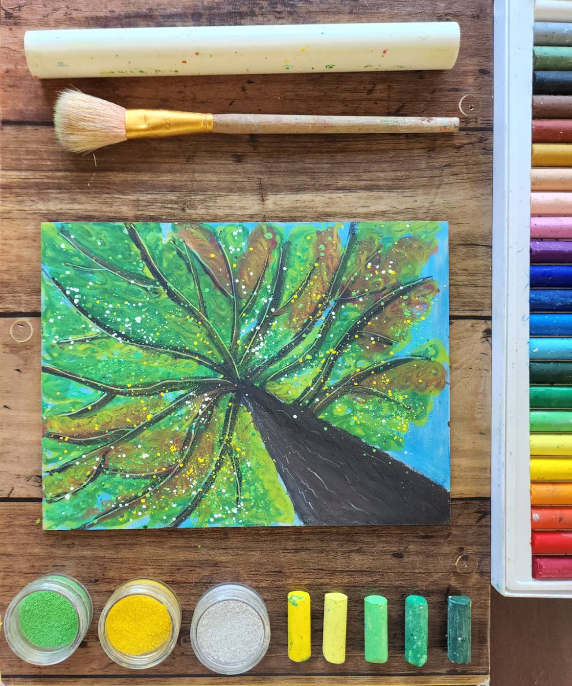 本次小畫室即用最易取得的媒材-蠟筆(油畫棒),除了引導畫出專屬於漁光島的美麗景致外,也可以選擇其他各式喜愛圖像,一起在芬多精的洗禮下,抵達心靈的歸屬。