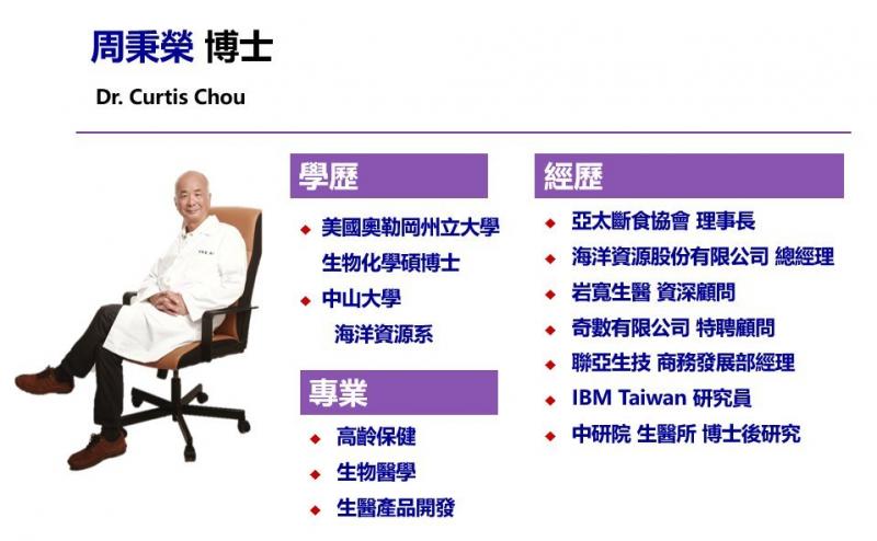 出身醫藥世家的周秉榮博士,是亞太斷食協會理事長,於1993年取得美國奧勒岡州立大學生化博士學位,隨即返國進入中央研究院生物醫學研究所,研究DNA與蛋白質的結構與功能,並於2004年獲聘為國立海洋生物博物館的技術移轉顧問,更於2006年創辦海洋資源公司,從事天然物藥妝與保健產品的研發與銷售。
