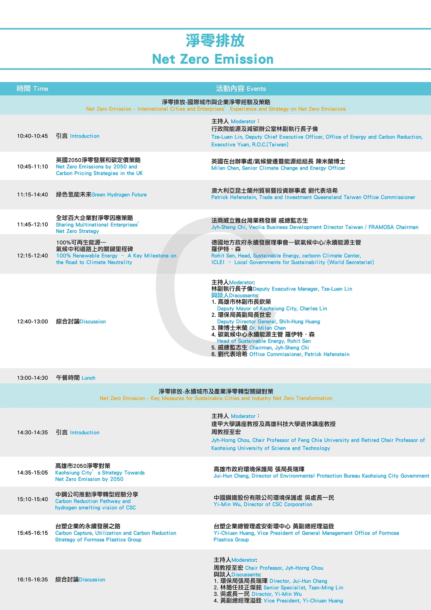 - 開幕暨淨零倡議(A廳):各城市及產業代表發表淨零倡議。
