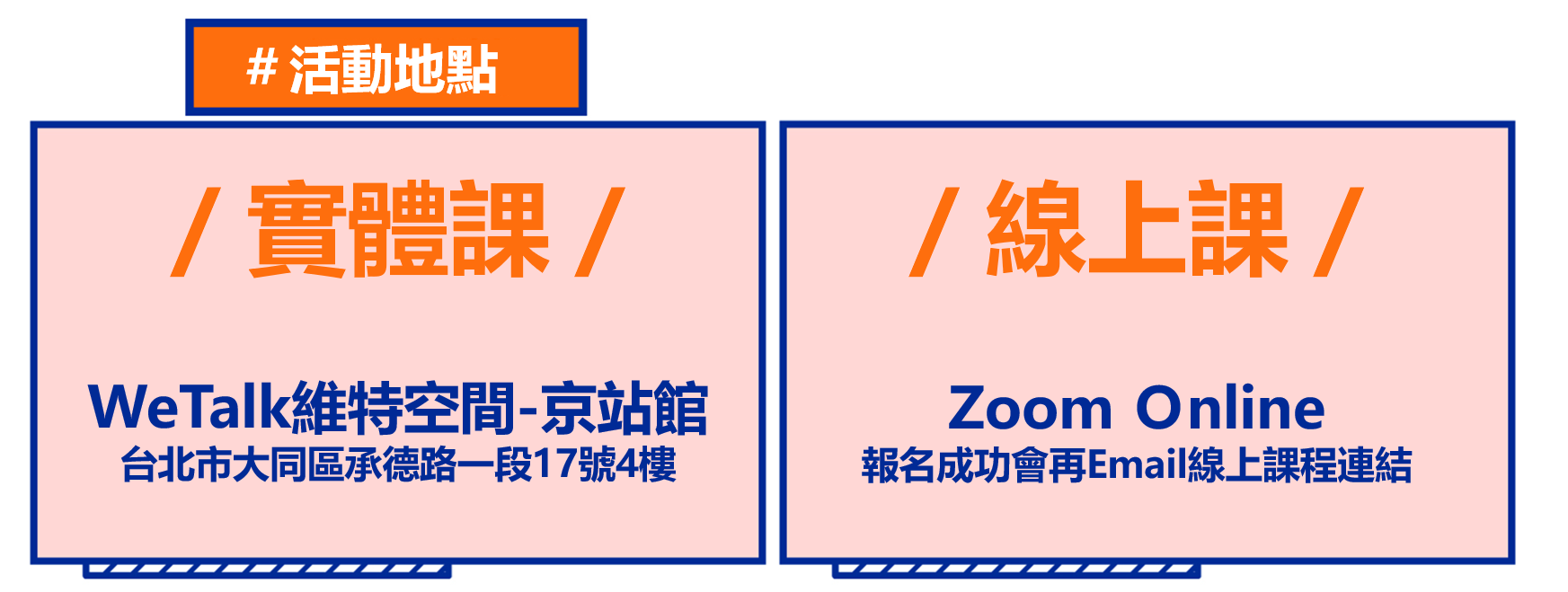 5. 通過審核者,系統將於活動前兩日以電子郵件方式寄送「報名成功通知」至您的電子信箱,線上學員亦會有線上課程「專屬連結」,以示您的出席資格,未通過審核者,亦會收到一封婉拒通知信。若您未收到任何通知信件,敬請來電洽詢。