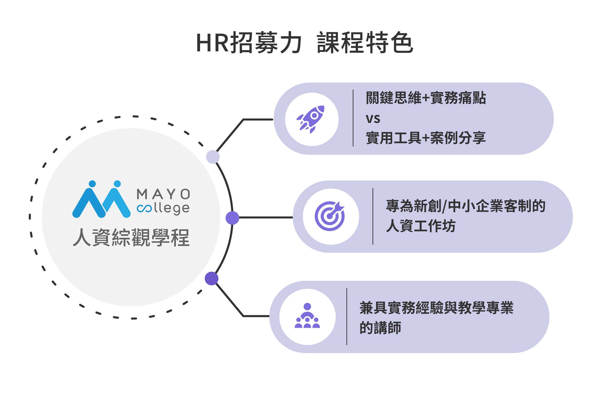 MAYO College特別為新創與中小企業的人資夥伴規劃這堂結合實務經驗與工具方法的課程,將從現況分析、僱主品牌、到創新手法,分享新創與中小企業的HR夥伴該如何提升招募的質與量,為組織保有持續成長的人才動能!