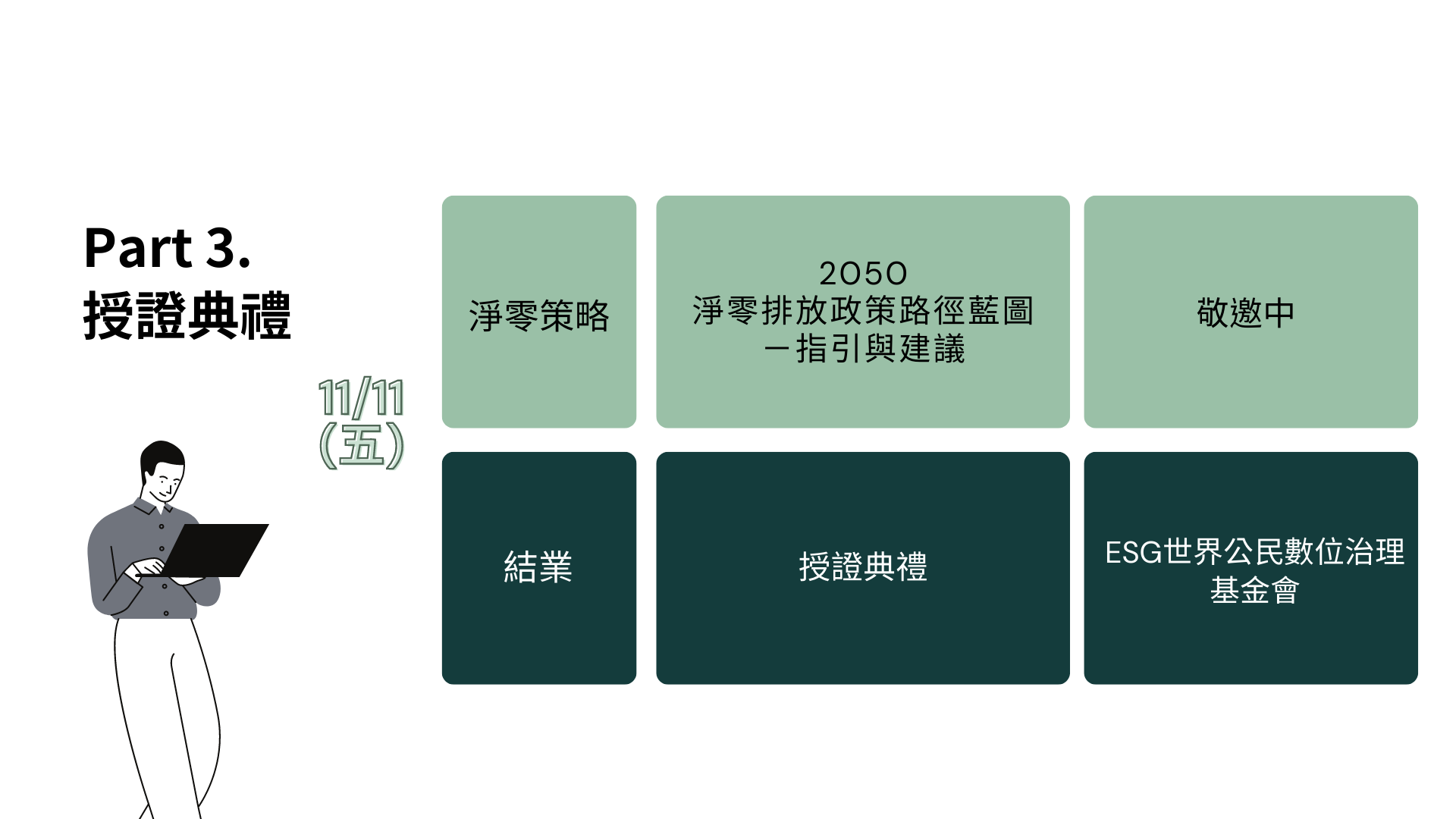 - 會員票種專屬:ESG世界公民數位治理基金會董事及所屬單位成員,或數位治理協會法人或個人會員 (會員票價購買時需由主辦方審核資格後,方可付款完成報名。)